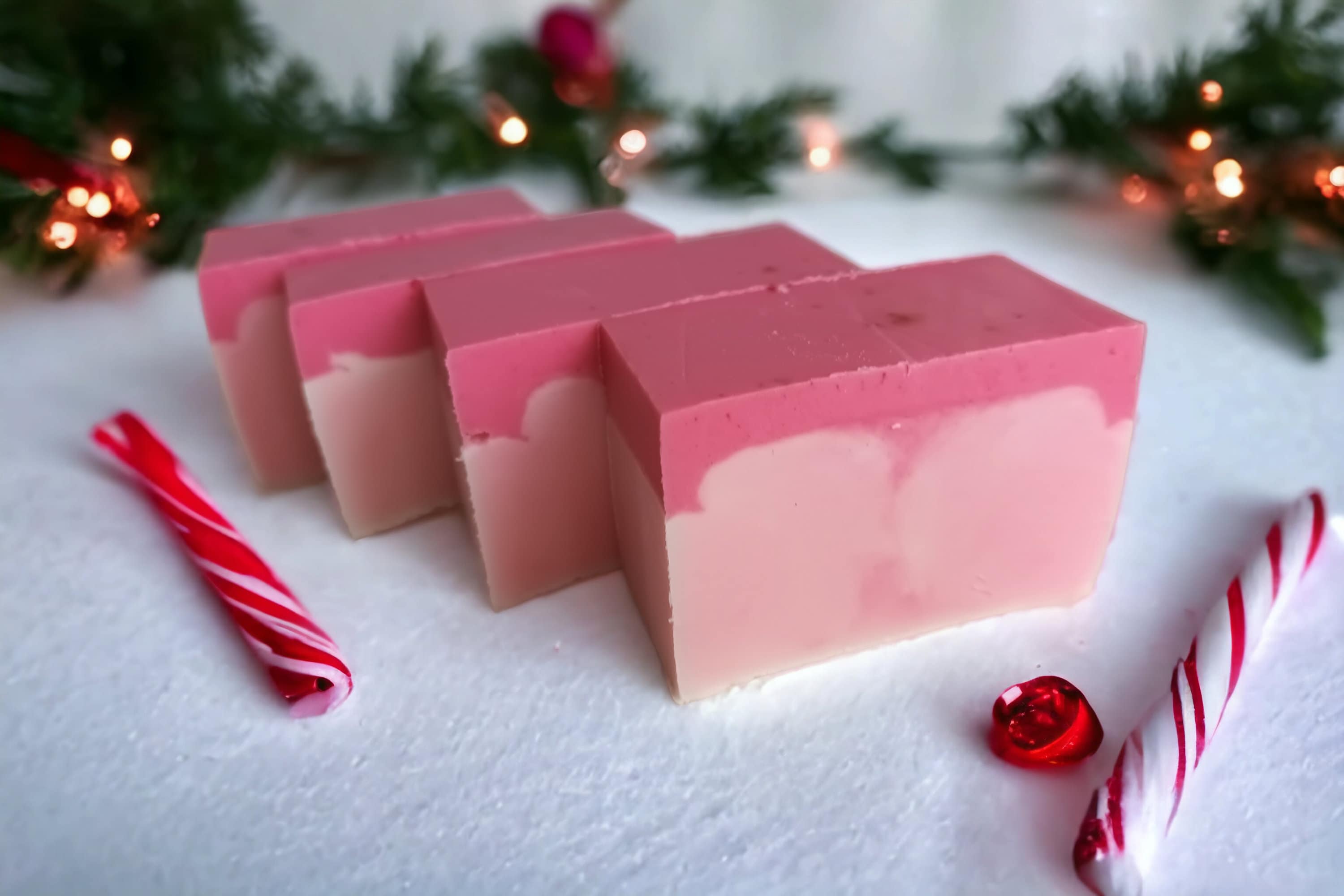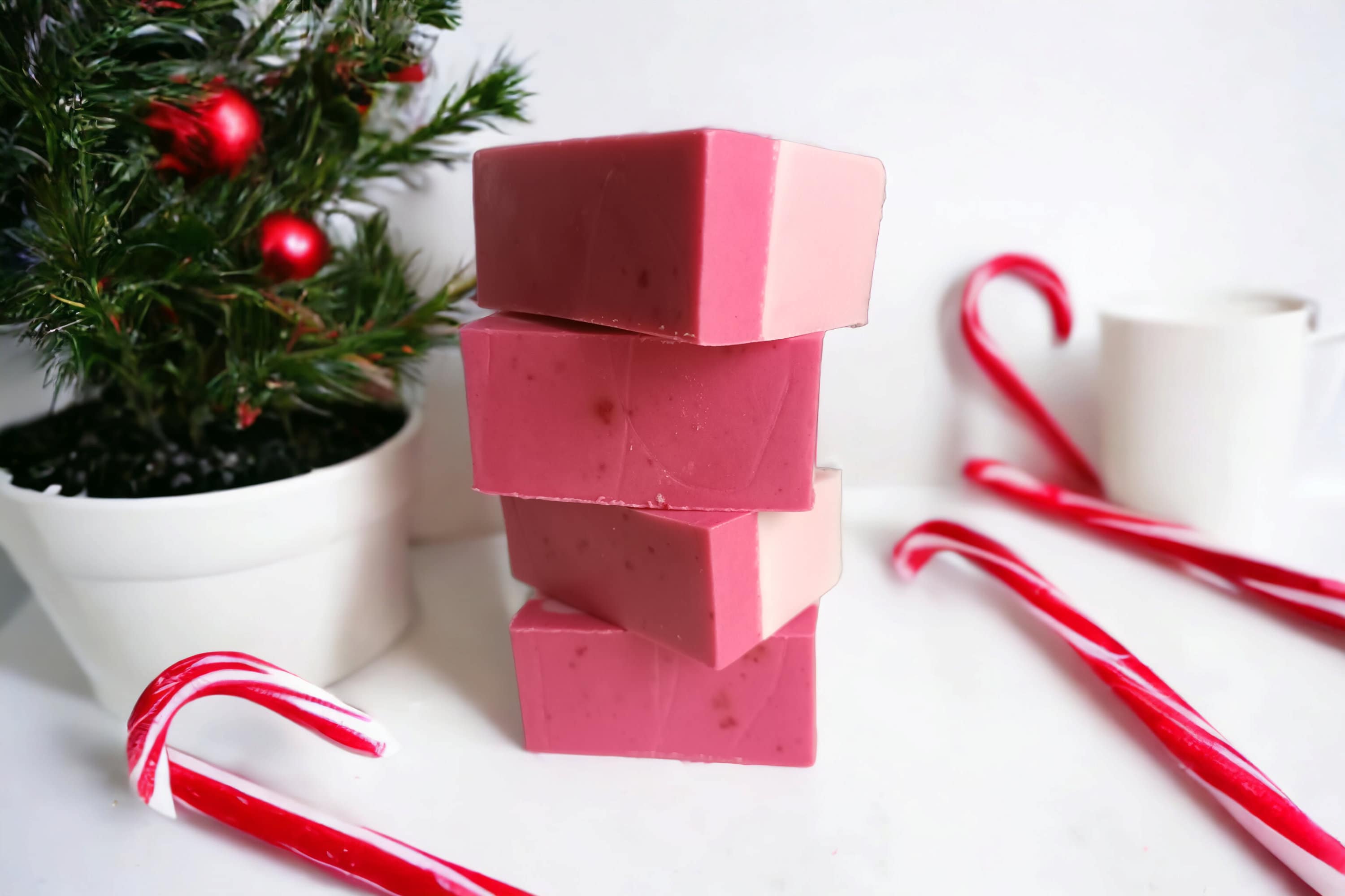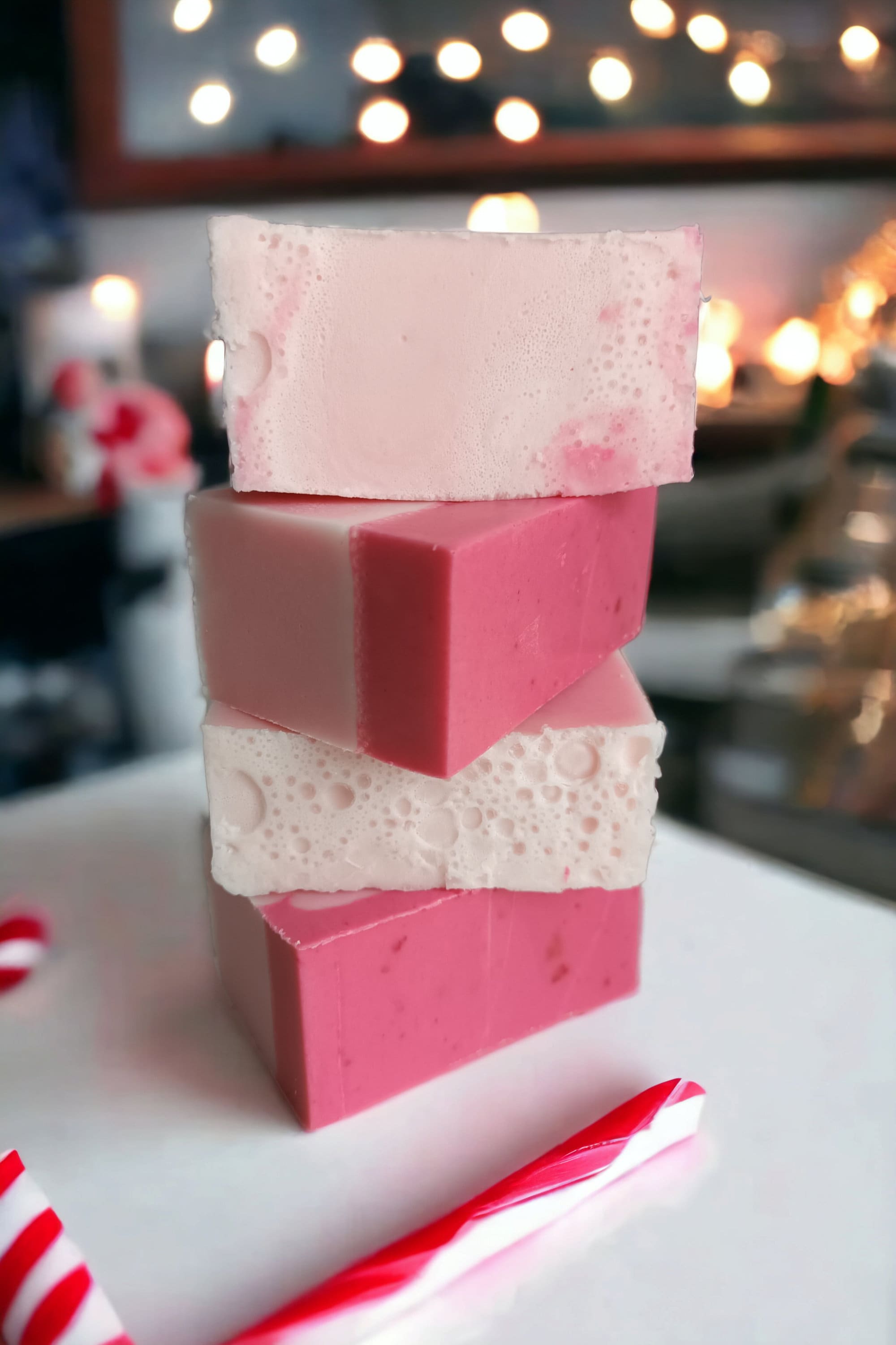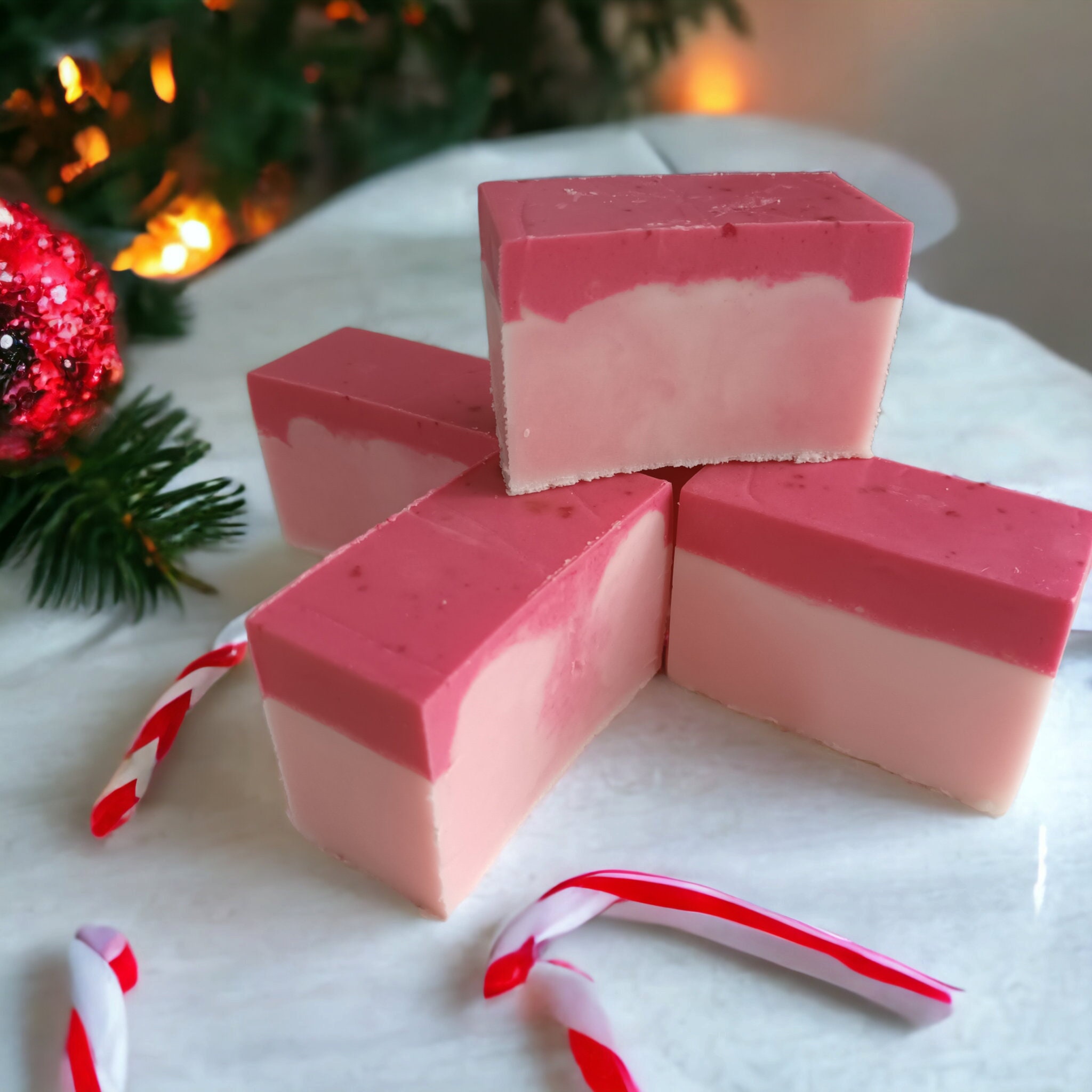 Candy Cane Goats Milk Soap, Festive Peppermint Fragranced Soap for Christmas