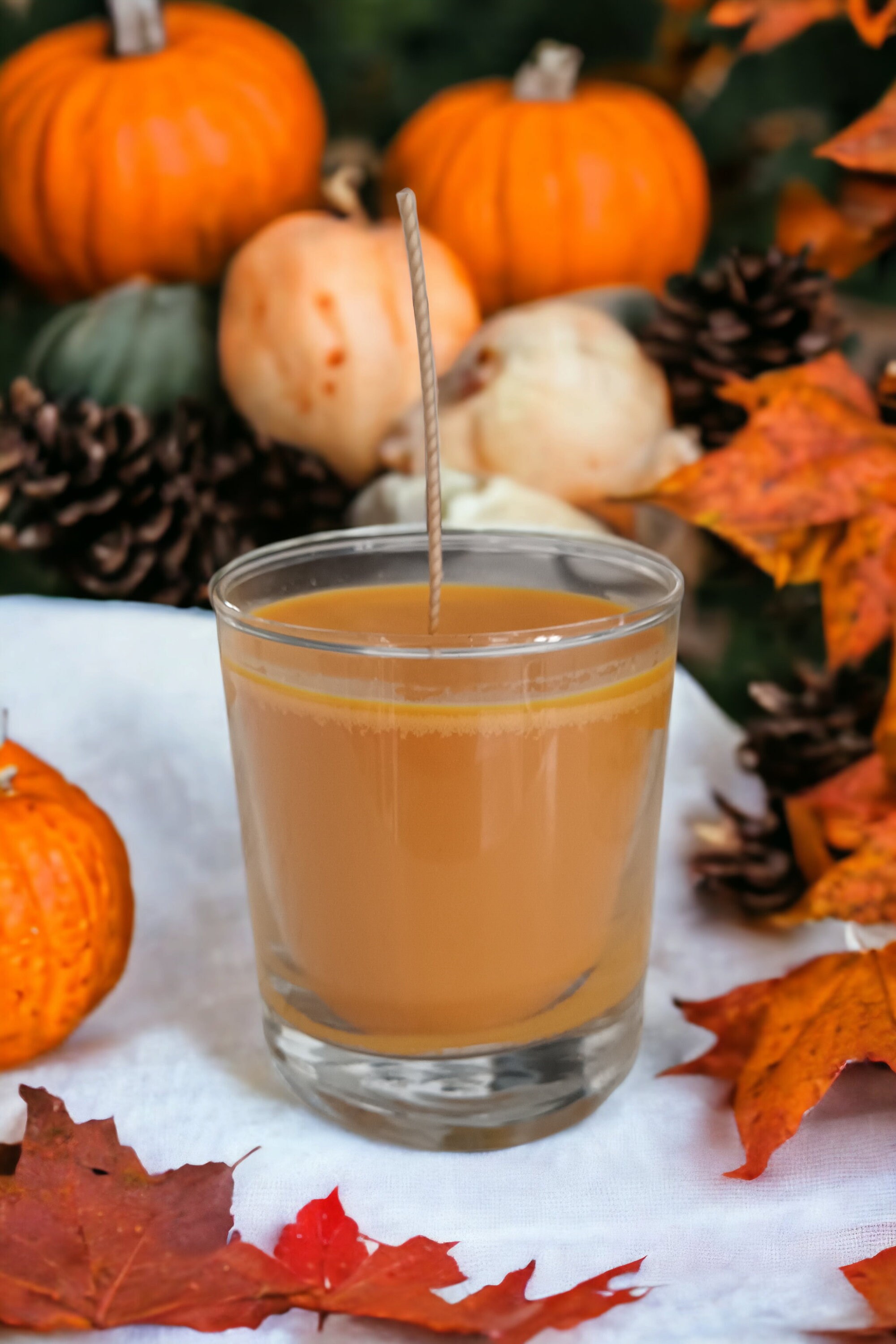 Pumpkin Spice Soy Candle: Autumn Cinnamon Scent, Recycled Glass Jar